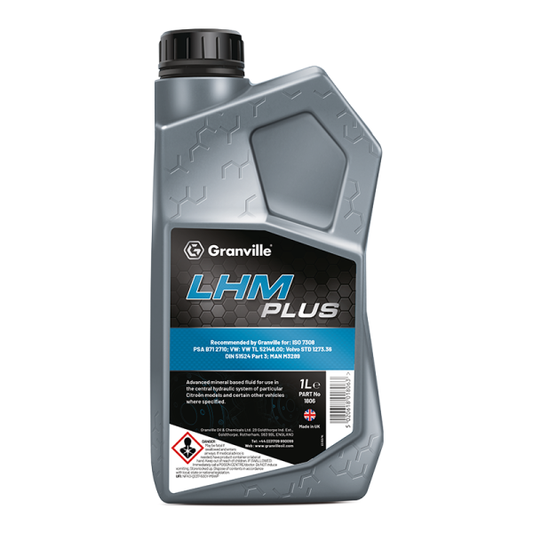 Granville LHM Plus is a mineral based high performance lubricant for use in the hydraulic systems of Citroen, Rolls Royce and certain other vehicles. LHM Plus can be used in power steering systems, shock absorbing devices, hydrostatic driving gears, ABS/ASR and ASC systems and electrohydraulic folding roof control systems where specified.