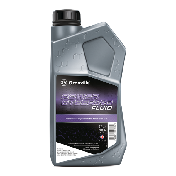 Granville Power Steering Fluid is a specially formulated ATF Dexron II product for power steering pumps and systems. Power Steering Fluid protects against wear and helps prevent squeals.