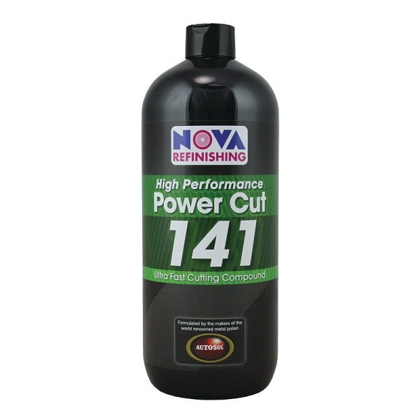 Nova High Performance Power Cut 141 is an ultra fast cutting and polishing compound designed to remove P1500 or finer sanding scratches from fresh or well cured paintwork during the surface rectification process. Power Cut 141 quickly eliminates overspray and contamination leaving a superior high gloss finish when used on all types of finishes including scratch resistant clear coats. The high tech advanced emulsion formulation is silicone free and does not contain fillers. Used as a two stage process when used in conjunction with Nova High Performance Final Finish 320, this will produce the ultimate permanent high gloss finish with no recurrence of flatting marks.