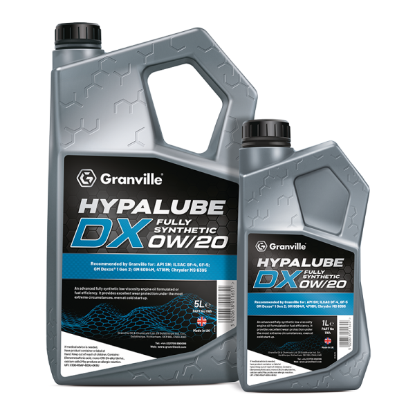 Granville Hypalube DX 0W/20 is an advanced fully synthetic low viscosity engine oil formulated for fuel efficiency. It provides excellent wear protection under the most extreme circumstances even at cold start up. This viscosity of oil may not be suitable for use in certain engine types, please refer to the owner manual or handbook.