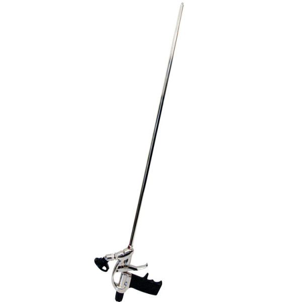 Heavy duty metal PU foam gun for the application of foam adhesives. Available in 2 different versions, 1 with regular threaded adapter and 1 with connected hose with an adaptor for Soudal canister foam adhesives. Barrel length available in 60cm long and 1m extra long..