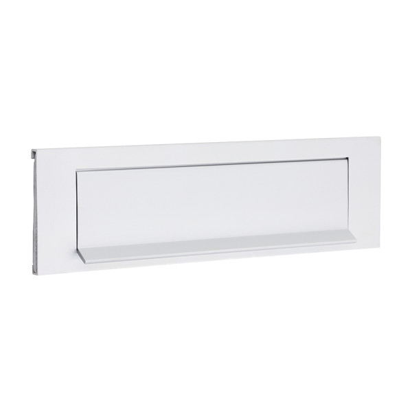 Letter plate with gravity flap which can be opened by lifting upwards. The gravity flap automatically closes once the flap is released. Bolt through fixing for a secure fitting.
