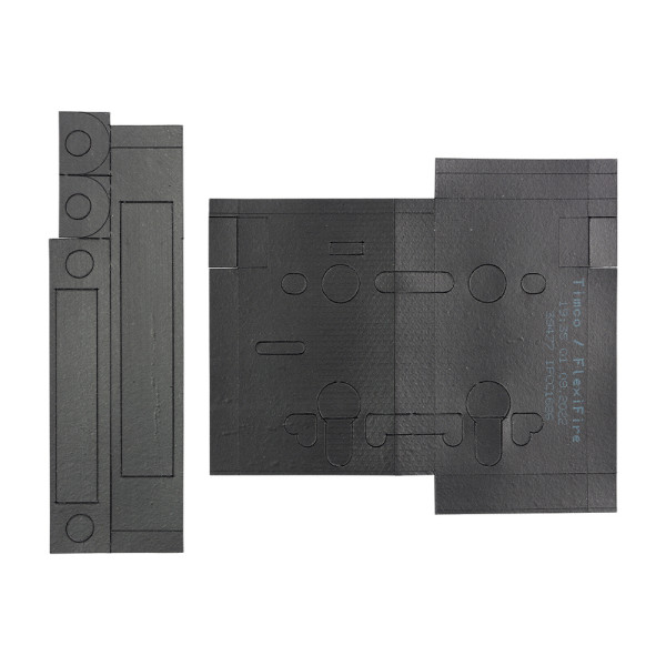 TIMCO FlexiFire HS is a graphite-based elastomeric sheet material custom cut for use on rebated hardware such as Sashlocks. FlexiFire HS has an expansion ratio in excess of 15 times its original volume.