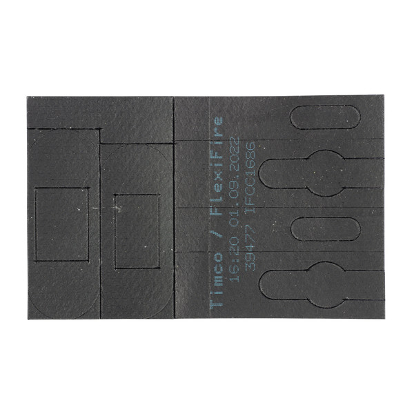 TIMCO FlexiFire HS is a graphite-based elastomeric sheet material custom cut for use on rebated hardware such as tubular latches. FlexiFire HS has an expansion ratio in excess of 15 times its original volume.