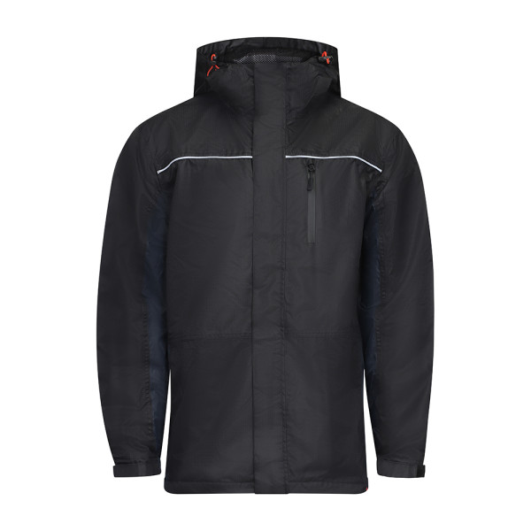A heavy duty and lightweight lined rain jacket and hood made from tough fabric for durable and long lasting waterproofing. With a concealed back vent for increased user comfort.